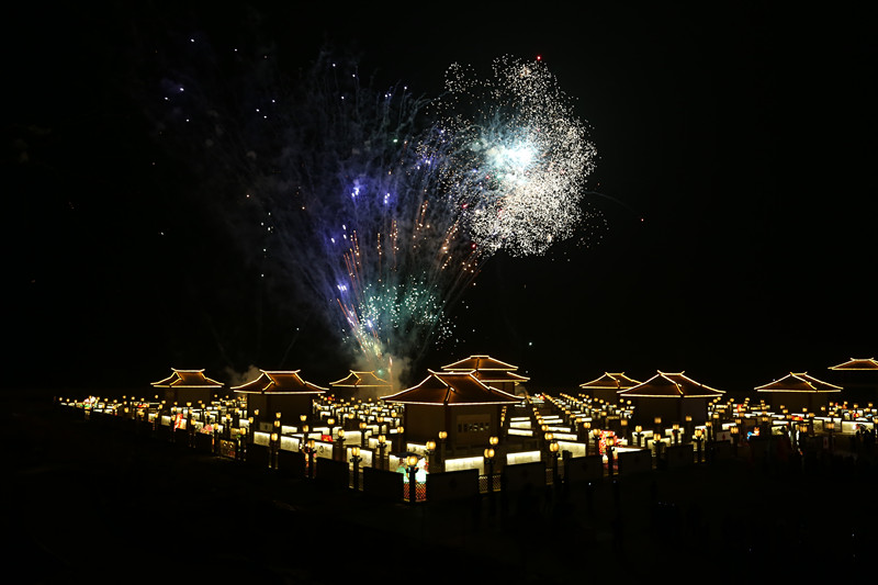 夜色渐暗,南凉古都里的九曲黄河灯阵开始明光烁亮,与往年不同的是,今年的九曲黄河灯阵已从“小年夜”点亮。