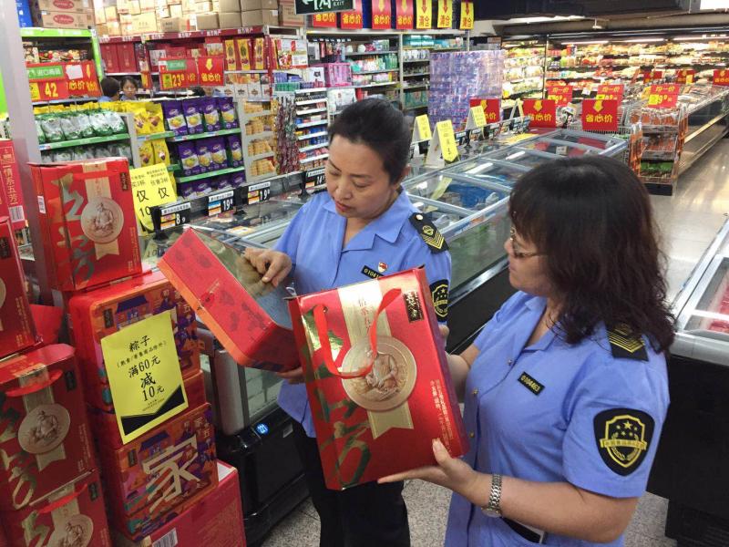 临近端午,超市专门开设粽子选购专区,有散装的、袋装的、礼盒包装的,执法人员检查了在售粽子的供货商资质、检测报告是否齐全、储存条件是否达标等情况。检查未发现问题。