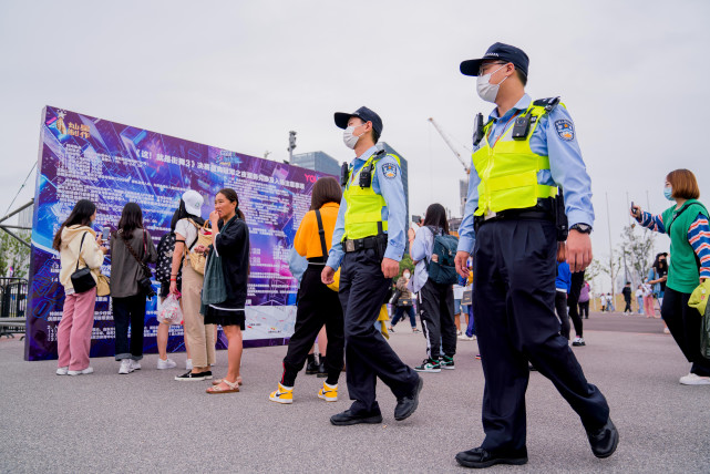 澎湃新闻记者在现场跟随民警,探访了活动背后的保障力量。