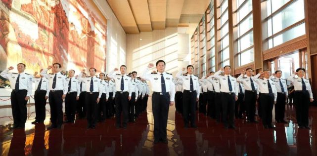 参观结束后,赵克志带领公安部党员领导干部重温入党誓词。