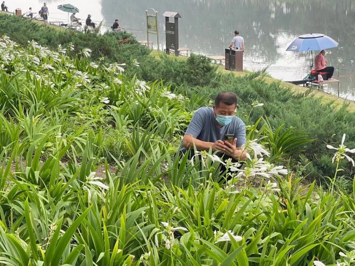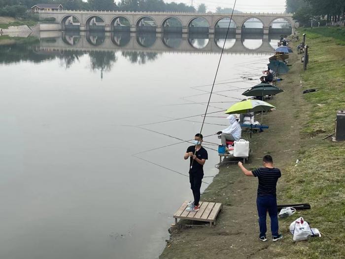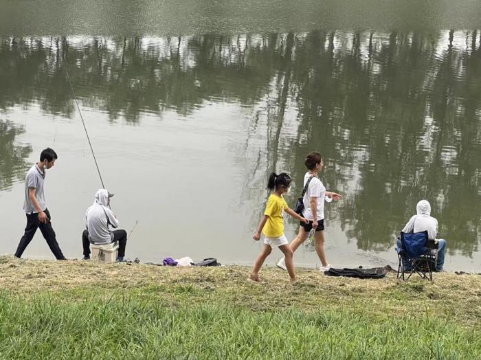 8月22日,在垂钓区享受周末休闲时光的人们。