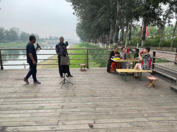 8月22日,北京通州市民走出户外在运潮减河边垂钓、唱歌、锻炼、观赏风景,尽享周末快乐时光。