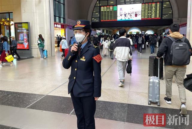 二楼的心连心服务台里,值班站长孙凡珺和同事一边解答旅客的疑问,一边听着对讲机里的呼叫:大到调整检票口、老人孩子走失,小到灯泡不亮、地面污渍,都需要她这个“大管家”第一时间赶到,协调处理。当天,数万名旅客在他们的守护下,顺利踏上回家的旅途。