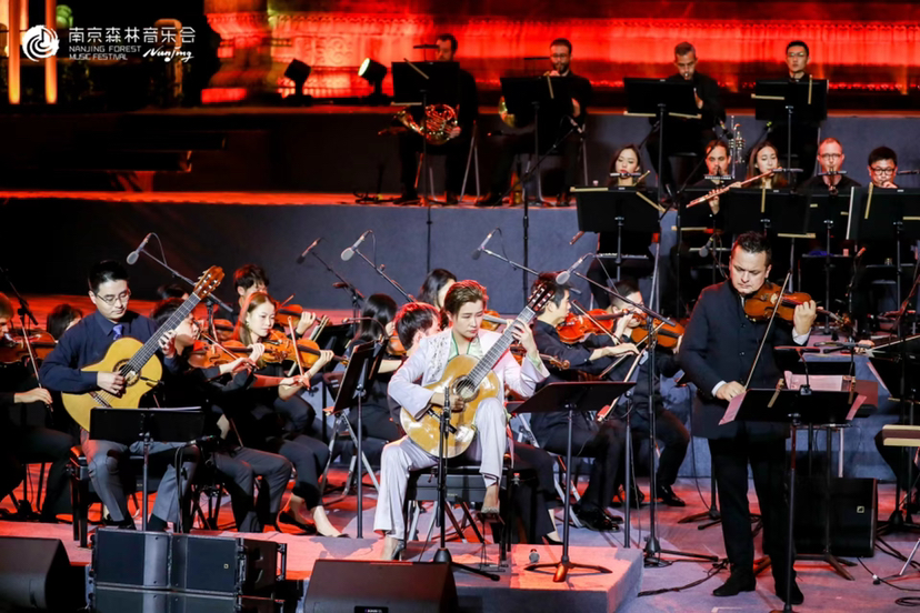 9月11日晚,南京森林音乐会精彩继续。在森林、草地、星空下,在如水的月光中,波兰指挥家卡巴拉与古典吉他演奏家苏萌、闵振奇,德国大提琴家汉斯·克劳迪斯·莱佩特,以及苏州交响乐团联袂带来年度最值得期待的古典吉他与提琴音乐会,开启了一场音乐与心灵的浪漫之旅。