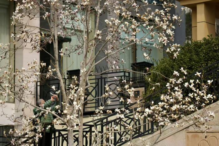 看北京|“黄金花墙”上线,市民打卡春日限定美景