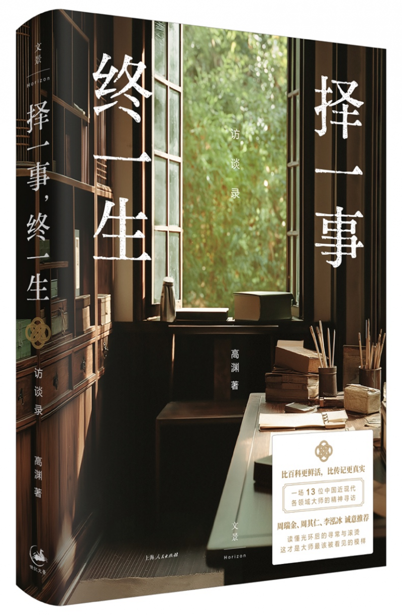 近日,世纪文景出版了上海市文学艺术界联合会副主席、上海市作家协会专职副主席高渊的访谈录新作《择一事,终一生》,该书是高渊作为资深记者曾深耕十年人物访谈的心血结晶。全书通过对施蛰存、胡焕庸、钱锺书、邓稼先等十余位近现代中国各领域翘楚的亲友、弟子的深度访谈,还原了大师们在学术深耕、人生抉择与家国担当上的真实轨迹。