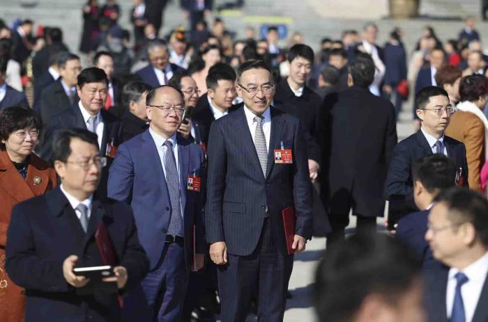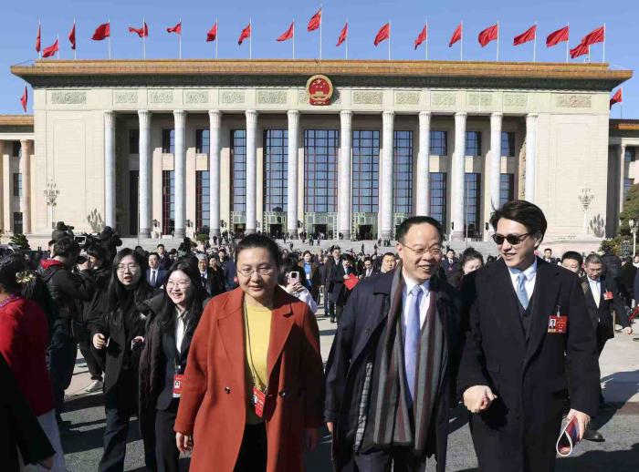 闭幕式后,政协委员走出人民大会堂。