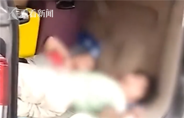 原来交警长阳大队民警查获了一起面包车超员的违法行为,该车核载5人,实载7人,其中有两个小孩无座可坐,直接被放进后备厢,宛如乘坐卧铺一般横躺在内睡觉。