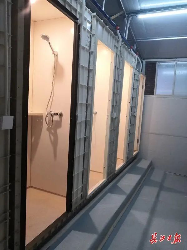 汉汽方舱各舱集中设有饮水机、洗漱台、淋浴间、移动厕所和空调、电视机、微波炉等设施设备,满足日常生活需求;配置视频监控、广播和呼叫器,提高医护人员管理效率;设立WIFI和图书角,满足放松休闲、辅助治疗作用;张贴宣传标语,为患者加油鼓劲。每张床还配有固定接线板、收纳箱和拖鞋等18件套,保证病人住得舒心。