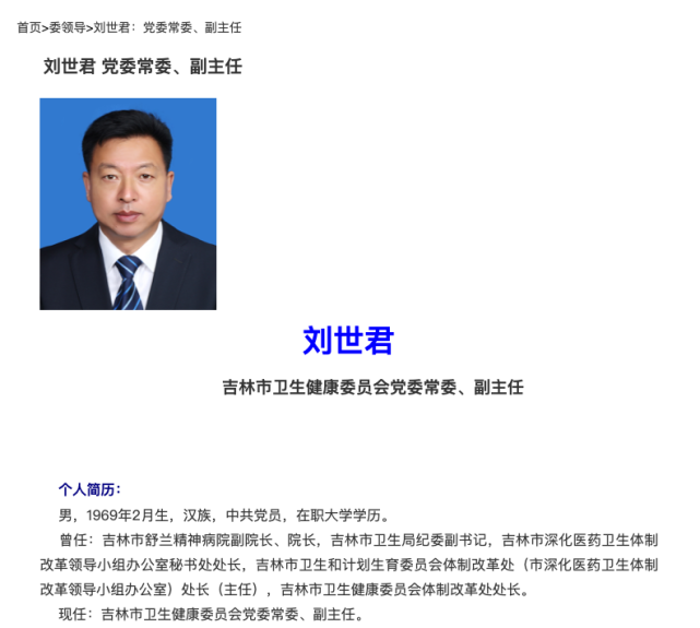 上述被免职名单中还有一人也值得关注——吉林市卫生健康委员会副主任、党委常委刘世君。