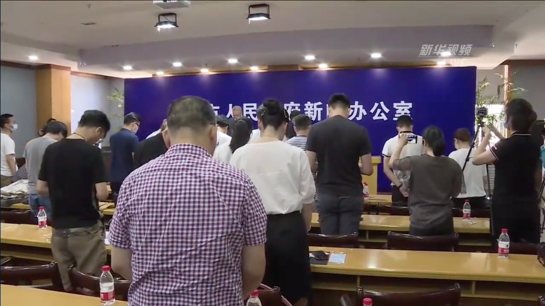 发布会开始前,温岭市市委宣传部副部长、市政府新闻办主任叶贵明提议,全体起立,为这次事故的遇难者默哀。