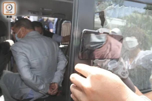 根据香港“东网”曝光的画面,黎智英是双手锁上手铐被带走的。