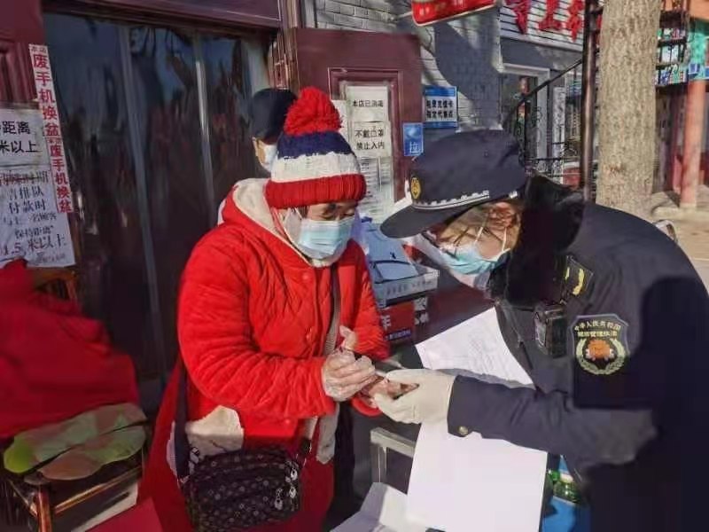 经过几轮对营业商户疫情防控工作的检查,他们与商户间慢慢熟络起来,一句句亲切的称呼拉近了与商户间距离。辖区内的“六小”门店经营者多为中老年人,有几家商户经营者年龄超过了七十岁,因为没法熟练使用手机操作,执法队员便手把手教学,生成登记码、打印张贴、设置“一米线”、消毒液配比等等。冬天很寒冷,执法队员的细致与认真却温暖着一位又一位商户的心。