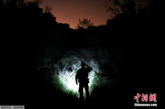 资料图:当地时间2019年4月6日,美国得克萨斯州帕尔姆维尤,边境巡逻人员正在搜寻非法入境的移民