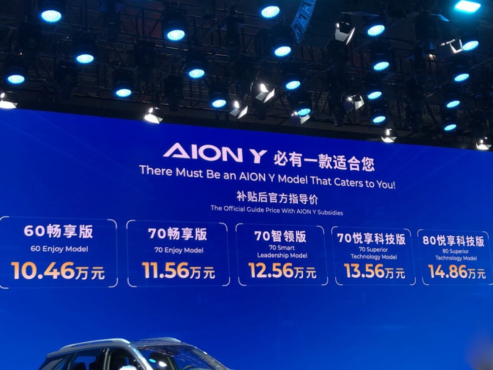 4月19日,广汽埃安AION Y在本届上海车展中正式上市。该车系共计5款产品,补贴后售价区间为10.46万-14.86万元。广汽埃安AION Y定位为紧凑级纯电SUV,提供了ADiGO3.0自动驾驶辅助系统、一键式遥控泊车以及5G互联娱乐等丰富功能。更凭借颇具时尚感的外形,以及较为舒适的内饰氛围,在亮相之初就受到了广泛关注。