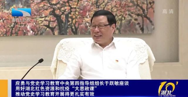 据湖北新闻联播报道,当天,湖北省委书记应勇与于跃敏一行座谈交流。