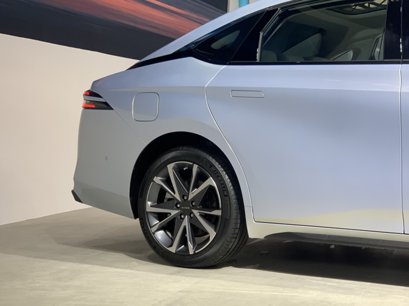 侧面来看,AION S Plus车身尺寸分别为4810*1880*1515mm,轴距2750mm。车身侧面仍然维持现款AION S前低后高的俯冲姿态,不过整体效果低趴流畅了很多,新设计更加大气。新车采用悬浮式车顶、双腰线以及隐藏式门把手,星风暴四幅式轮毂很有科幻风格,整车风阻系数0.211。