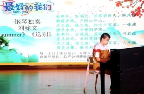 回顾中学生涯,刘翰文说,“还清楚记得六年前,父母和我一起来到人大附中翠微学校报到,与刘小惠校长一起交流我的情况,当小惠校长听说我擅长弹钢琴时,对我说,‘欢迎你来人翠,人翠初中、高中部都有合唱团,你都可以担任学校合唱团钢琴伴奏。’那时我第一次感受到了能被老师欣赏,是多么快乐自豪、价值感爆棚的一件事儿啊。”就这样,在人大附中翠微学校六年,除了高三这一年外,刘翰文连续五年担任合唱团钢琴伴奏。他在文中一再感谢母校老师的包容、欣赏、耐心指导与爱。他不忘感谢全社会对残疾人的关爱。他认为,正因社会的关爱,他才得以通过特制的“大字卷”来顺利完成高考,并取得理想的成绩。