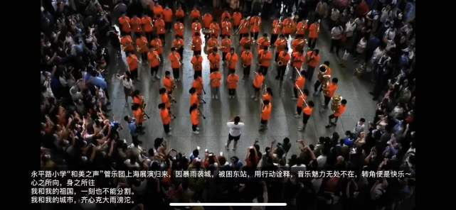 至于表演曲目,老师们不约而同提到——《我和我的祖国》,在这样的灾难面前,这首歌再合适不过。当老师们告诉学生要在车站表演时,孩子们都非常兴奋,很快拿出乐器排好队,在指挥老师的带领下演奏起《我和我的祖国》。当时滞留在车站的上海旅客张曙光就是被这首曲子吸引,循着歌声,来到孩子们身边,录下了这动人的一幕。