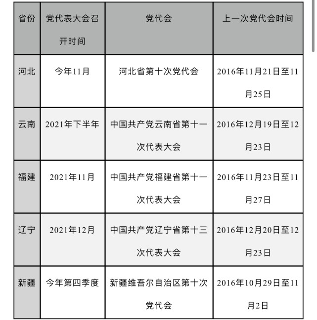 政知君注意到,各省党代会的时间开始陆续对外公布了。
