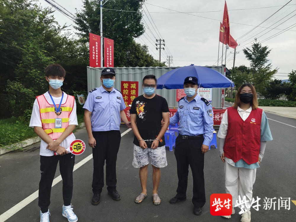 8月12日上午9时许,一男子驾车途经泰州市姜堰区大伦镇防疫卡口,执勤工作人员按照要求对其测温、查验行程卡,对方却拒绝配合。尽管多次劝导,男子仍是眼神闪躲、置若罔闻。男子的异常表现引起了同在卡口执勤的大伦派出所民警的注意,遂上前询问男子姓名,并要求其出示身份证、驾驶证等有效证件进行查验。