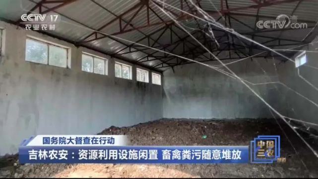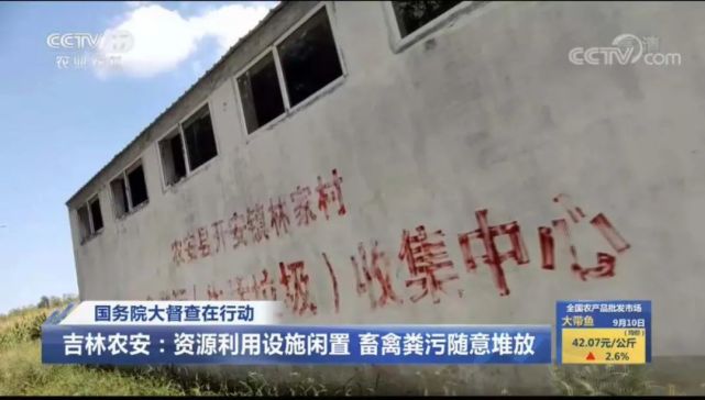 9月10日,新华社报道,国务院第八次大督查第七督查组赴农安县明察暗访发现,该县粪污转化中心和部分村级粪污收集中心闲置浪费,畜禽粪污仍大量存放在村口、路边,有的甚至大量堆积,侵占污染农田,严重影响农村人居环境和中央专项资金效益。