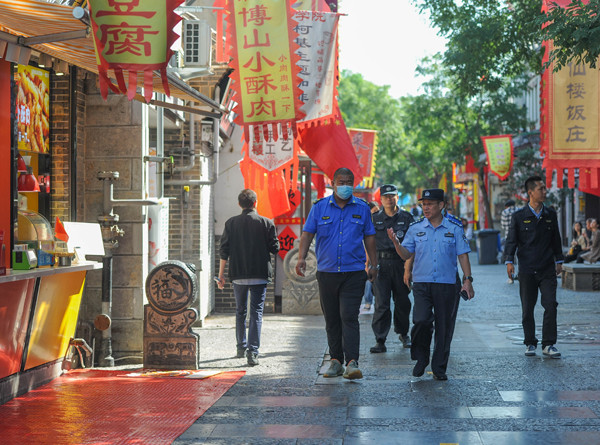 10月1日上午8点,尽管宽厚里的大部分商户还没开始营业,高富亮已经开始了巡逻任务,“由于假期市民较多,为了保障市民出行安全等,必须对辖区景点等区域进行不间断巡逻。”他说,巡逻不仅要将一些潜在的安全隐患排除,最重要的是提醒商户、市民和游客都要有防范意识。
