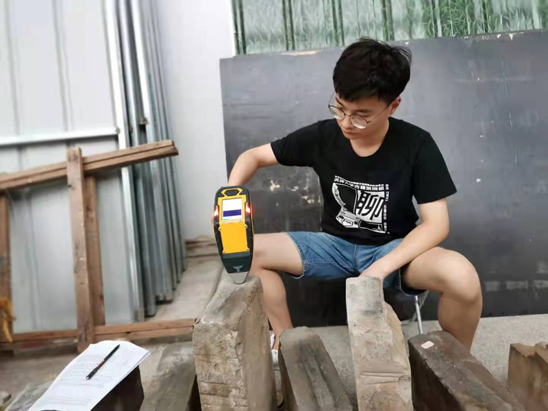课题组对大城砖进行元素检测(供图/中国古代青砖研究团队)