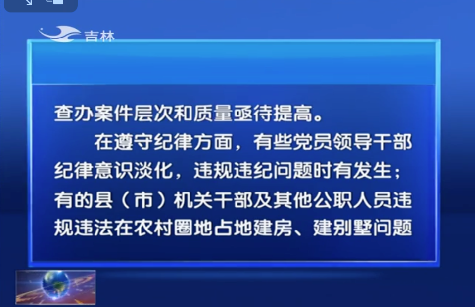 2015年9月,吉林省委第四巡视组向延边州反馈巡视情况。当时的反馈中提到,有的县(市)机关干部及其他公职人员违规违法在农村圈地占地建房、建别墅问题比较突出。