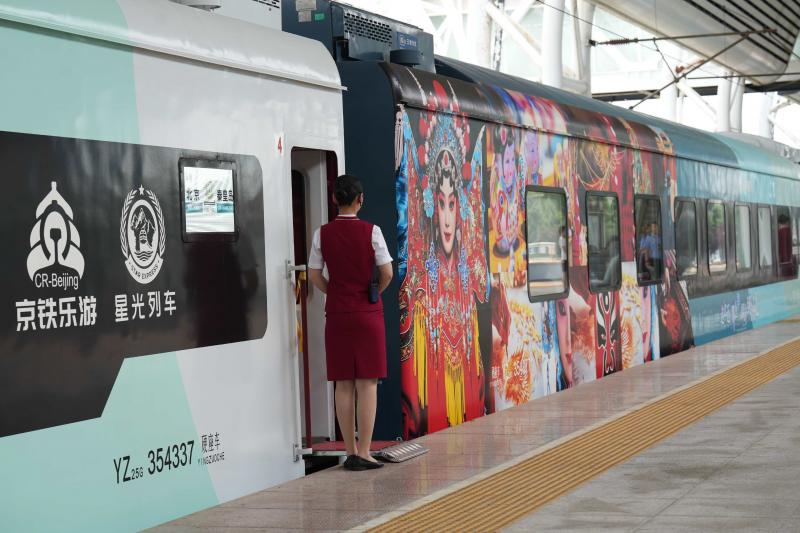 据了解,今年7月9日,由国铁北京局、河北省发展和改革委员会联合中国旅游集团投资和资产管理有限公司共同打造的京津冀首列“星光·燕赵号”观光旅游列车从北京站始发。全新打造的“星光·燕赵号”旅游列车,创新功能设计,实现从“交通工具”向“移动观景客厅”华丽蜕变。