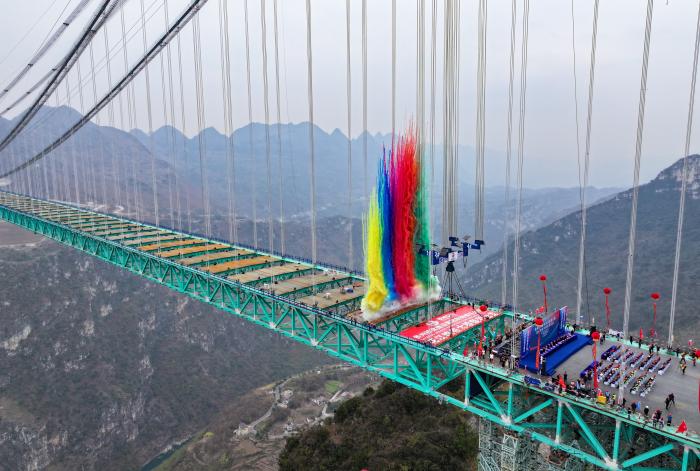 2025年1月17日,贵州花江峡谷大桥成功合龙(无人机照片)。新华社记者 刘续 摄