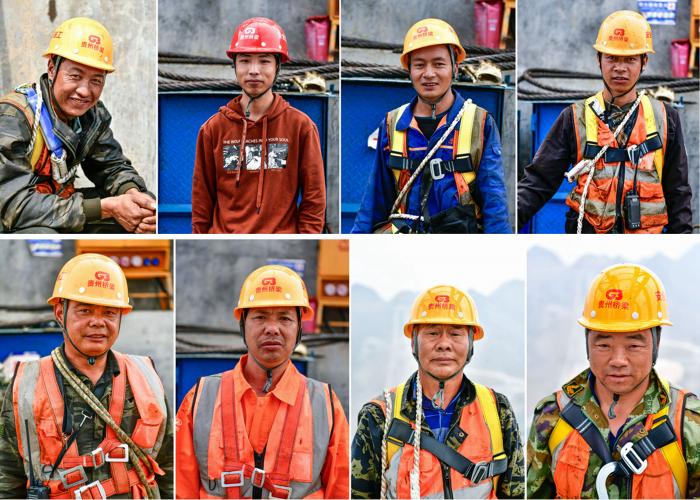 2024年3月27日在贵州花江峡谷大桥施工现场拍摄的建设工人群像(拼版照片)。新华社记者 杨文斌 摄