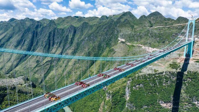 2025年8月21日拍摄的贵州花江峡谷大桥荷载试验现场(无人机照片)。新华社记者 欧东衢 摄