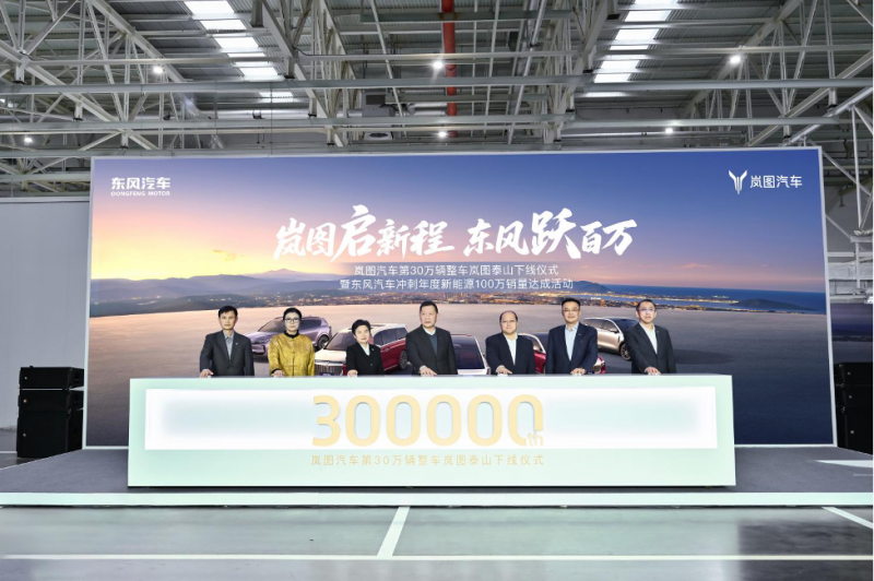 11月10日,岚图启新程 东风跃百万——岚图汽车第30万辆整车岚图泰山下线仪式暨东风汽车冲刺年度新能源100万销量达成活动在云峰工厂举行。随着第30万辆整车—岚图泰山下线,岚图汽车成为首个达成30万辆规模的央国企高端新能源品牌,也标志着东风汽车新能源转型及冲刺年度新能源100万销量目标迎来重要节点。