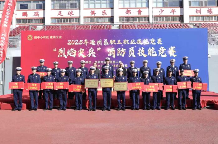11月13日,2025年通州区职工职业技能竞赛——“烈焰尖兵”消防员技能竞赛决赛在通州运河公园体育场圆满落幕。
