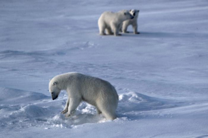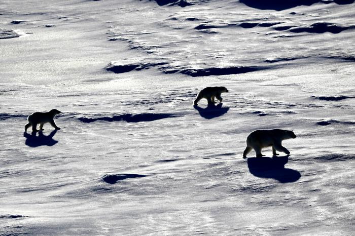 2025年8月31日在北冰洋高纬度地区拍摄的北极熊一家三口。
