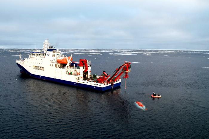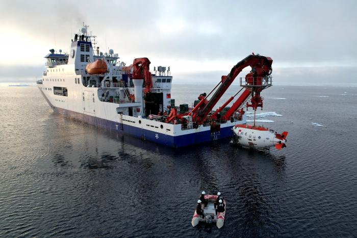 2025年8月11日,“蛟龙”号在北极冰区下潜归来。