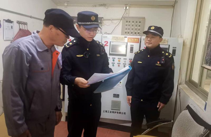 在设备间,执法人员仔细检查各台锅炉设备的运转情况及温度监测装置,并对锅炉房的防爆、预警、灭火等安全设施进行全面排查。经查,各类设备均处于稳定正常运行状态,供热情况良好。此外,执法队员重点检查出水及二次回水的压力泵等关键设备,要求工作人员实时监控压力数值,确保其保持在合理压力范围内。