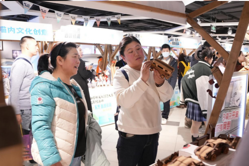 “认真招财的关小爷”带来“共同奔富”“飞速发财”系列冰箱贴,用轻松幽默消解压力,传递美好;匠杺社的木艺积木,从萌宠到机械,从恐龙到飞机,每一件都融合传统榫卯智慧与现代审美。