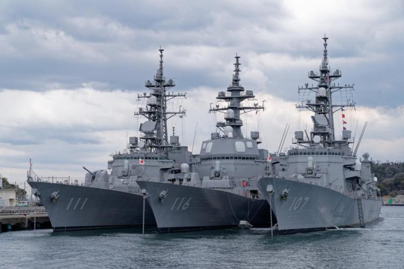 这是2024年3月20日在日本神奈川县横须贺市拍摄的停泊在横须贺基地的日本海上自卫队护卫舰。新华社记者张笑宇摄