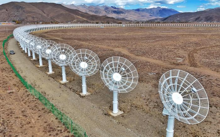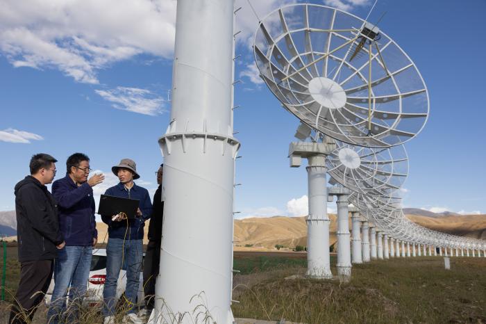 11月16日,这张大网向世界发布重大发现:困扰学界多年的宇宙线“膝”形成之谜,首次获得了关键性观测证据。2025年9月19日,中国科学院国家空间科学中心研究员、圆环阵太阳射电成像望远镜主任设计师阎敬业(左二)在位于四川省稻城县的子午工程二期圆环阵太阳射电成像望远镜设备运维现场与工作人员交流。新华社记者 江宏景 摄