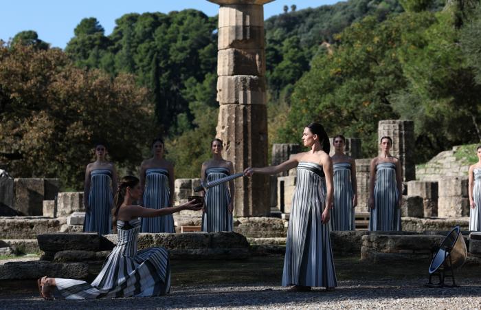 巴黎奥运会火种采集仪式在希腊古奥林匹亚举行