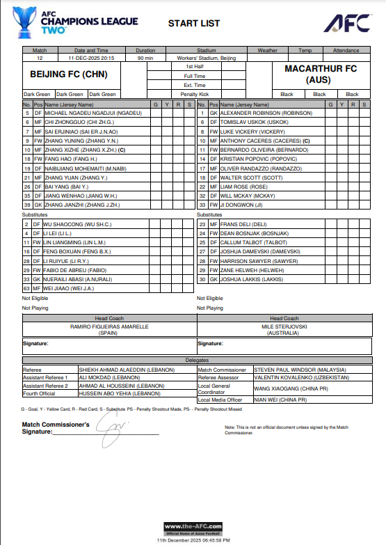 11日晚20点15,北京国安将在亚冠二级联赛小组赛最后一场争夺中主场迎战澳大利亚球队麦克阿瑟,赛前一小时,国安公布了首发名单,在这一场“荣誉之战”中,国安基本派出的是纯轮换阵容,之前机会不多的部分轮换球员得到信任,将出现在比赛名单中。