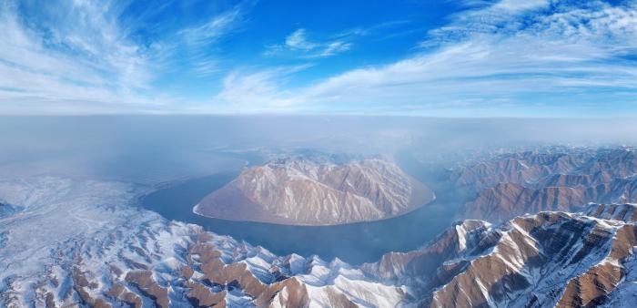 一场大雪过后,宁夏青铜峡黄河大峡谷银装素裹,两侧群山与白雪交相辉映,黄河水从峡谷中蜿蜒流淌,构成了一幅幅冬日壮美画卷。