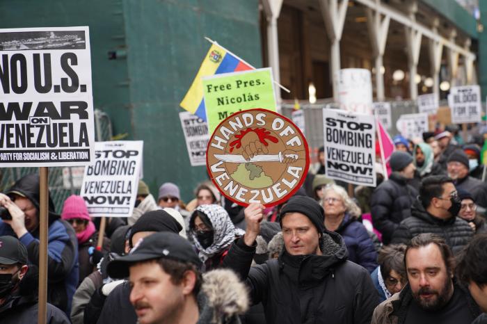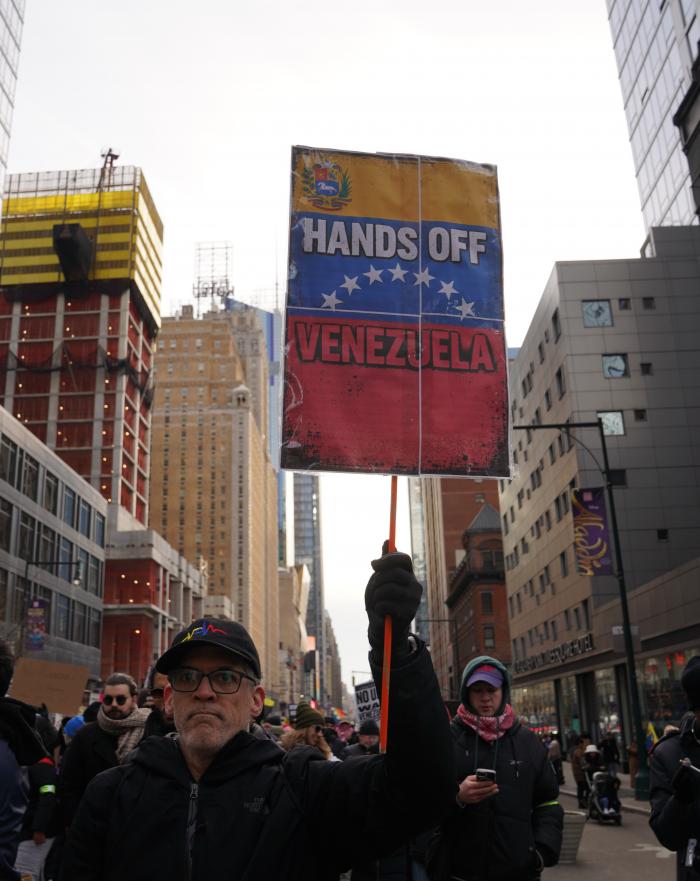 1月3日,近千名民众在美国纽约举行集会游行,抗议美国对委内瑞拉实施军事打击。