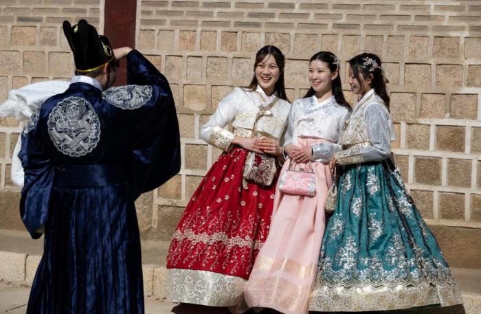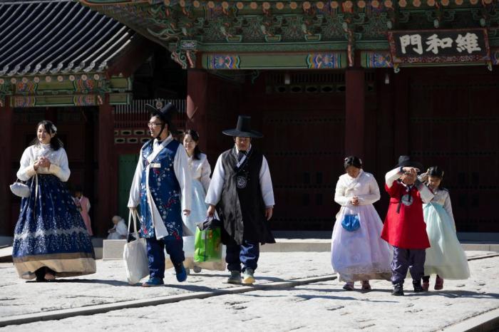 韩国春节假期期间,首尔的景福宫等古宫免费对外开放,吸引了众多游客。