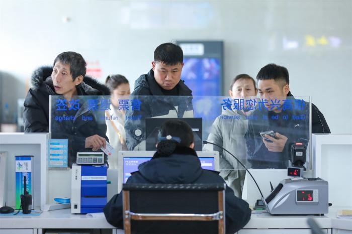 2月19日,在江苏海安站12306服务台,工作人员为旅客办理电子客票业务。新华社发(顾彬斌 摄)