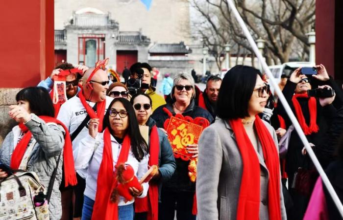 2026年2月20日(大年初四),2026年春节“澳洲万人游北京首发团”欢迎仪式在北京中轴线北端的鼓楼举行。
