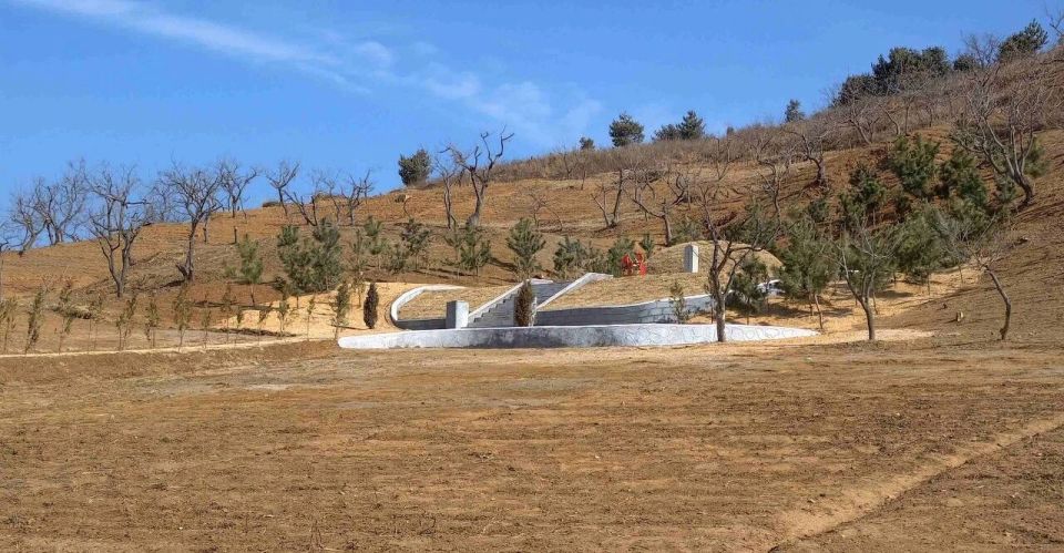 墓园坐落于安边郡石桥里一座小山上,紧邻南大川,周边青松环绕。上午11时许,王大使一行在烈士墓前整齐列队,齐唱《中华人民共和国国歌》,敬献花篮、鞠躬默哀并献花祭酒,表达对志愿军先烈们最崇高的敬意和最深切的缅怀。