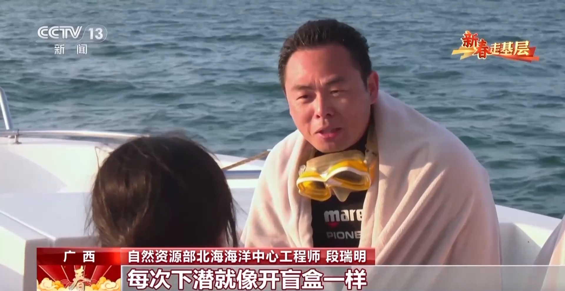 自然资源部北海海洋中心工程师 段瑞明:每次下潜就像开盲盒一样,经常见到一些不经常见到的海底小生物,就在珊瑚礁的洞穴里面探头探脑地出来,觉得好像跟我们互动一样。跟家人和身边的朋友说起来,我是进行珊瑚礁调查,还有珊瑚礁保护工作的时候,他们都非常感兴趣。
